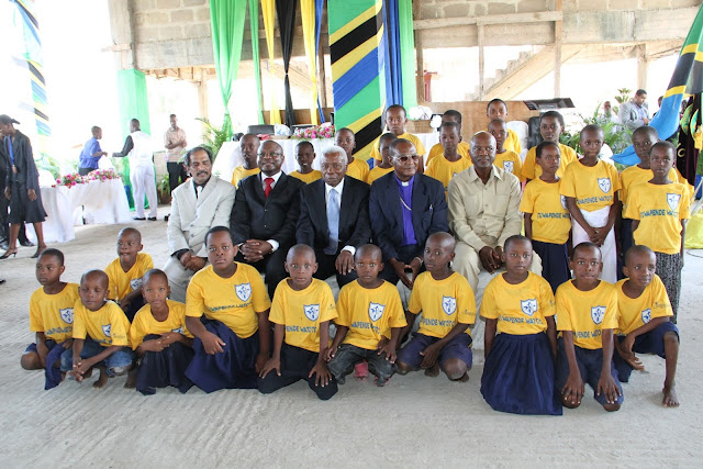 Makamu wa Rais wa Jamhuri ya Muungano wa Tanzania, Dkt. Mohammed Gharib Bilal, akipokea zawadi ya maua kutoka kwa watoto wa Kituo cha Kanisa la Tanzania Methodist la Msasani, wakati alipowasili katika kituo hicho leo kwa ajili ya kuhudhuria harambee ya kuchangia ujenzi wa Kituo cha Kanisa hilo iliyofanyika sambamba na Ibada maalum ya kumshukuru Mungu kwa ajili ya Shirika la Compassion International Tanzania kwa kuingia Ushirika wenza na Makanisa ya Mkoa wa Dar es Salaam na kuzindua Cd ya Kwaya ya Watoto wanaofadhiliwa na Shirika hilo.