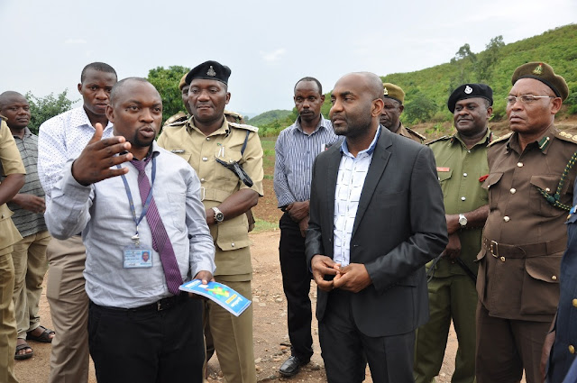 Mrakibu Mwandamizi wa Idara ya Uhamiaji, Gragiza John akijibu maswali aliyoulizwa na Naibu Waziri wa Wizara ya Mambo ya Ndani ya Nchi, Mhandisi Hamad Masauni (wapili kushoto) ,baada ya kutembelea moja ya vipenyo vinavyopitisha wahamiaji haramu kutoka Malawi katika mpaka wa Kasumulu. Naibu Waziri ameiagiza idara hiyo wakishirikiana na Jeshi la Polisi kudhibiti njia hizo ili kuzuia uingiaji wa wahamiaji hao, wakati wa ziara ya kikazi wilayani Kyela.