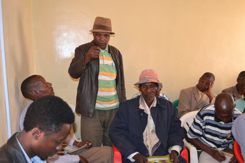 Mzee wa Kimila Hosea Mnyambi akichangia hoja katika semina ya kupinga Ukeketaji iliyofanyika katika Kata ya Msange Wilayani Singida.