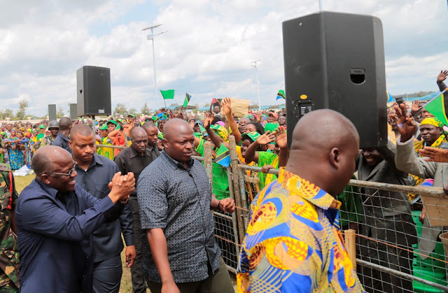 Rais wa Jamhuri ya Muungano wa Tanzania Mhe. Dkt. John Pombe Magufuli akiagana na mananchi mara baada ya kufungua Kituo cha Kisasa cha Mabasi cha Korogwe mjini mkoani Tanga.