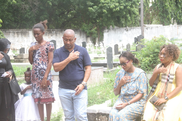 Mtoto Maraehemu Mzee Kingunge Gombalemwili , Kinjeketile Ngombale akiwa na mkewe pamoja na ndugu waliofika kuomboleza arobaini ya msiba huo katika makaburi ya kinondoni Dar es Salaam.