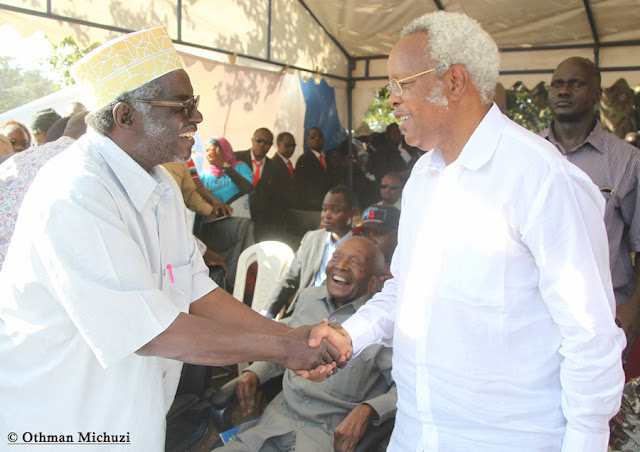 Mgombea Mwenza wa Urais wa Tanzania kwa tiketi ya Chama cha Demokrasia na Maendeleo (CHADEMA) kupitia mwamvuli wa UKAWA, Mh. Juma Duni Haji, akiwasalimia wananchi, katika Mkutano wa Kampeni, uliofanyika kwenye Uwanja wa Furahisha, Jijini Mwanza leo Oktoba 12, 2015.