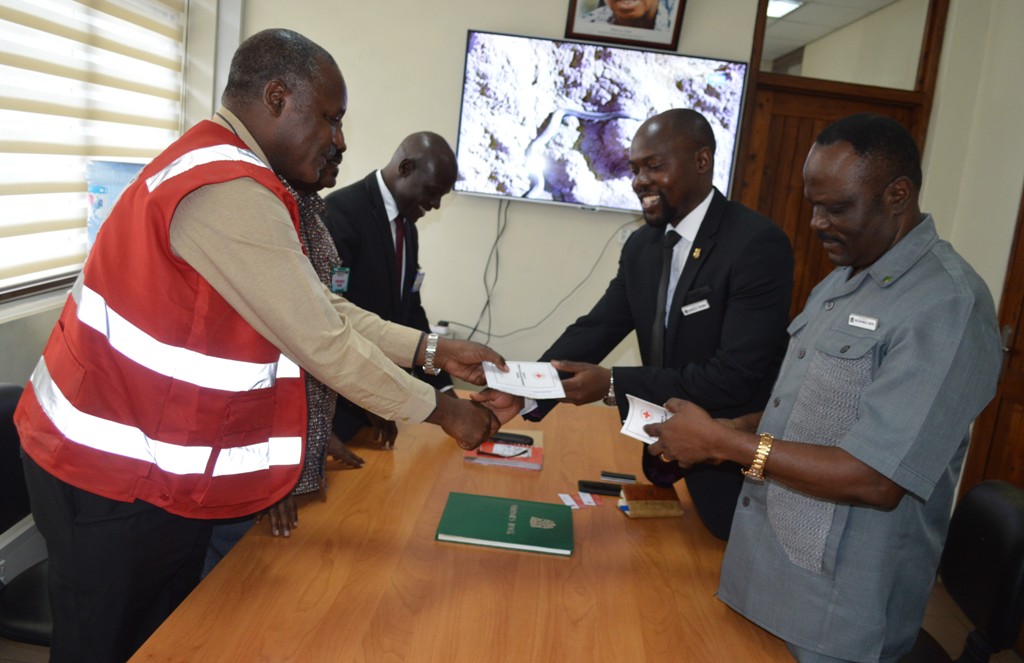 Mratibu wa Maafa Idara ya Uratibu wa Maafa Ofisi ya Waziri Mkuu Bw.Charles Msangi akipokea kadi ya uanachama wa Chama cha Msalaba Mwekundu Tanzania kutoka kwa Katibu wa chama hicho Bw. Julius Kejo Februari 16, 2017 katika Ofisi za Idara hiyo Dar es Salaam.