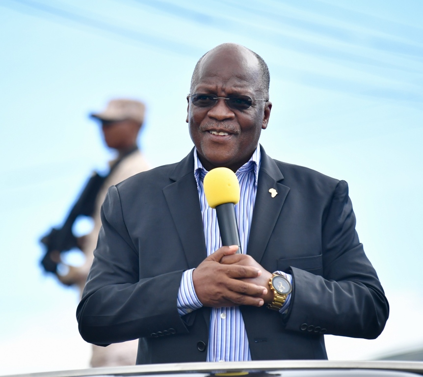 Rais wa Jamhuri ya Muungano wa Tanzania Mheshimiwa Dkt. John Pombe Magufuli akizungumza na wananchi wa Kiwira Wilayani Rungwe wakati aliposimama kuwasalimia.