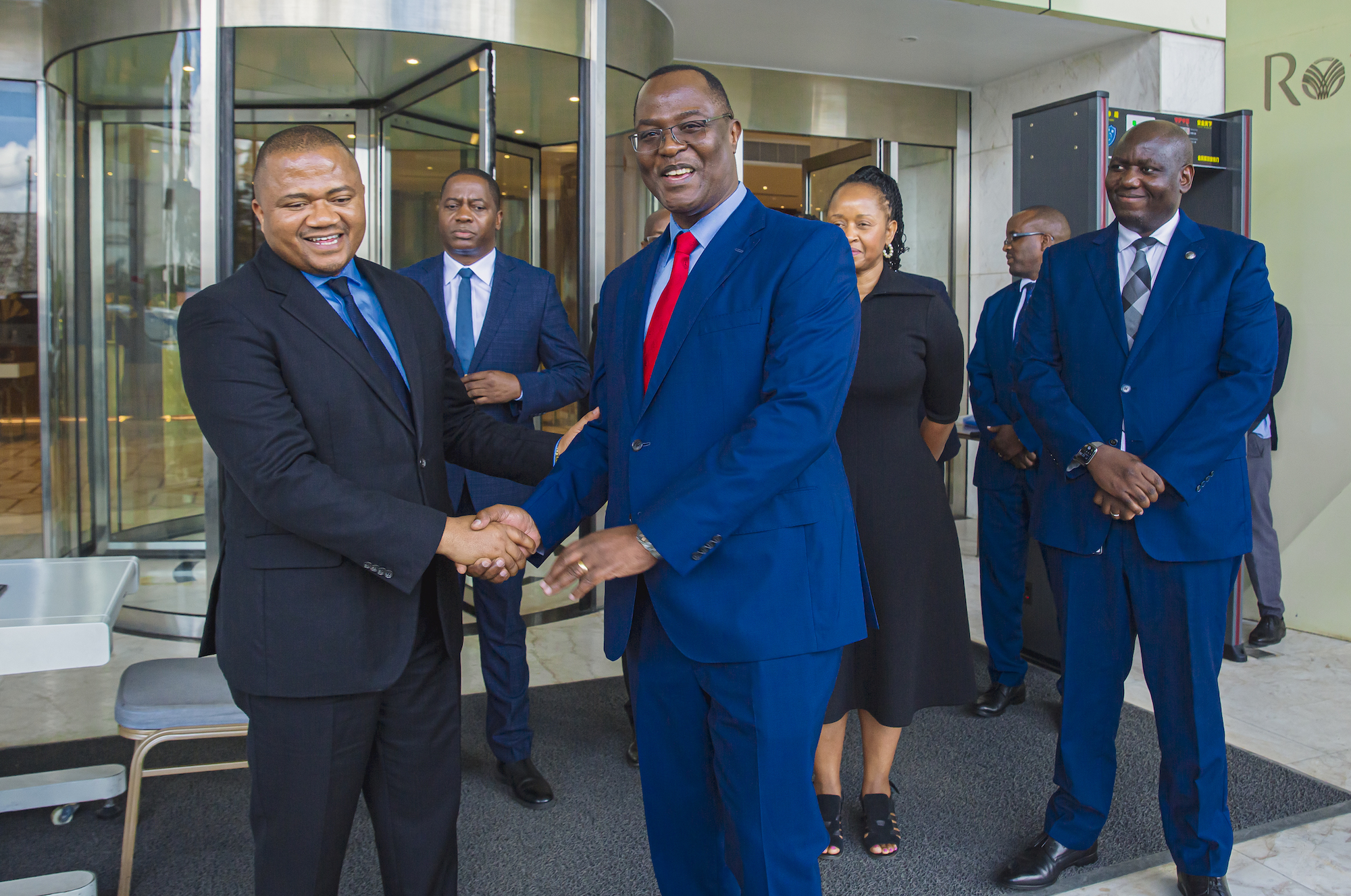 Msajili wa Hazina, Mgonya Benedicto (kulia) akiagana na Mkurugenzi Mtendaji wa Benki ya CRDB, Abdulmajid Nsekela wakati muda mfupi baada ya ufunguzi wa semina maalum iliyoandaliwa na Benki ya CRDB kwa ajili ya taasisi, mashirika, na wakala za serikali iliyofanyika katika hoteli ya Johari Rotana Jijini Dar es Salaam. Wengine pichani ni Afisa Mkuu wa Biashara wa Benki ya CRDB, Boma Raballa, Afisa Mkuu wa Uendeshaji Benki ya CRDB, Bruce Mwile, Mkurugenzi wa Mawasiliano Benki ya CRDB, Tully Mwambapa, na Afisa Mkuu wa Fedha Benki ya CRDB, Fredrick Nshekanabo.