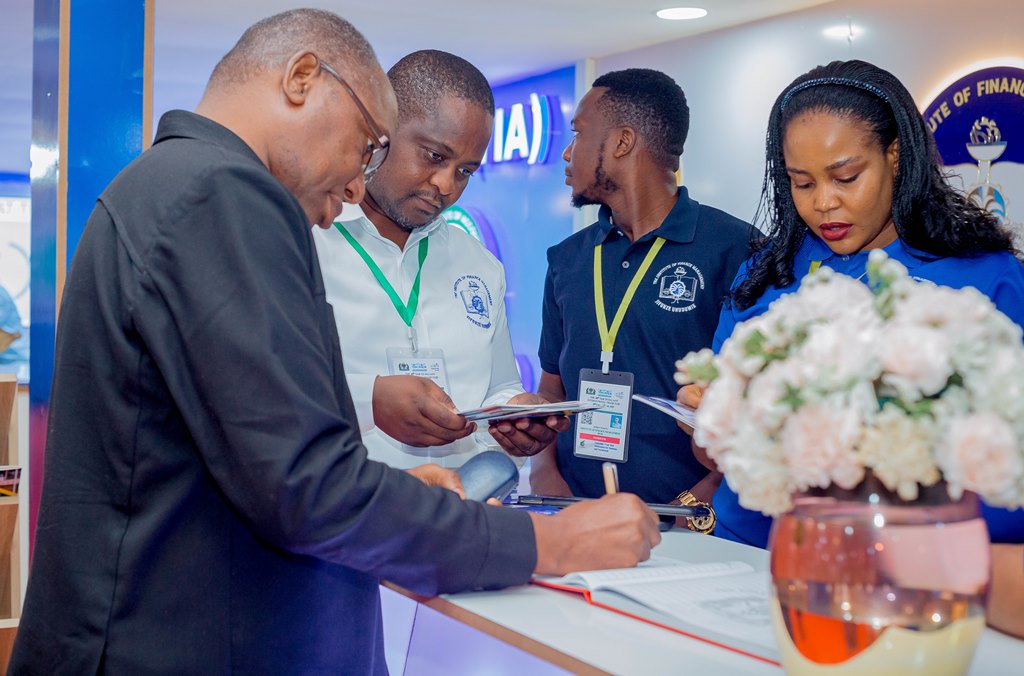 Mkurugenzi Mtendaji wa Bodi ya Taifa ya Wahasibu na Wakaguzi wa Hesabu Tanzania (NBAA), CPA Pius A. Maneno akisaini kitabu cha wageni alipotembelea banda la Chuo cha Usimamizi wa Fedha (IFM) ndani ya jengo la Wizara ya Fedha katika Maonesho ya 48 ya Kimataifa ya Biashara (Sabasaba).